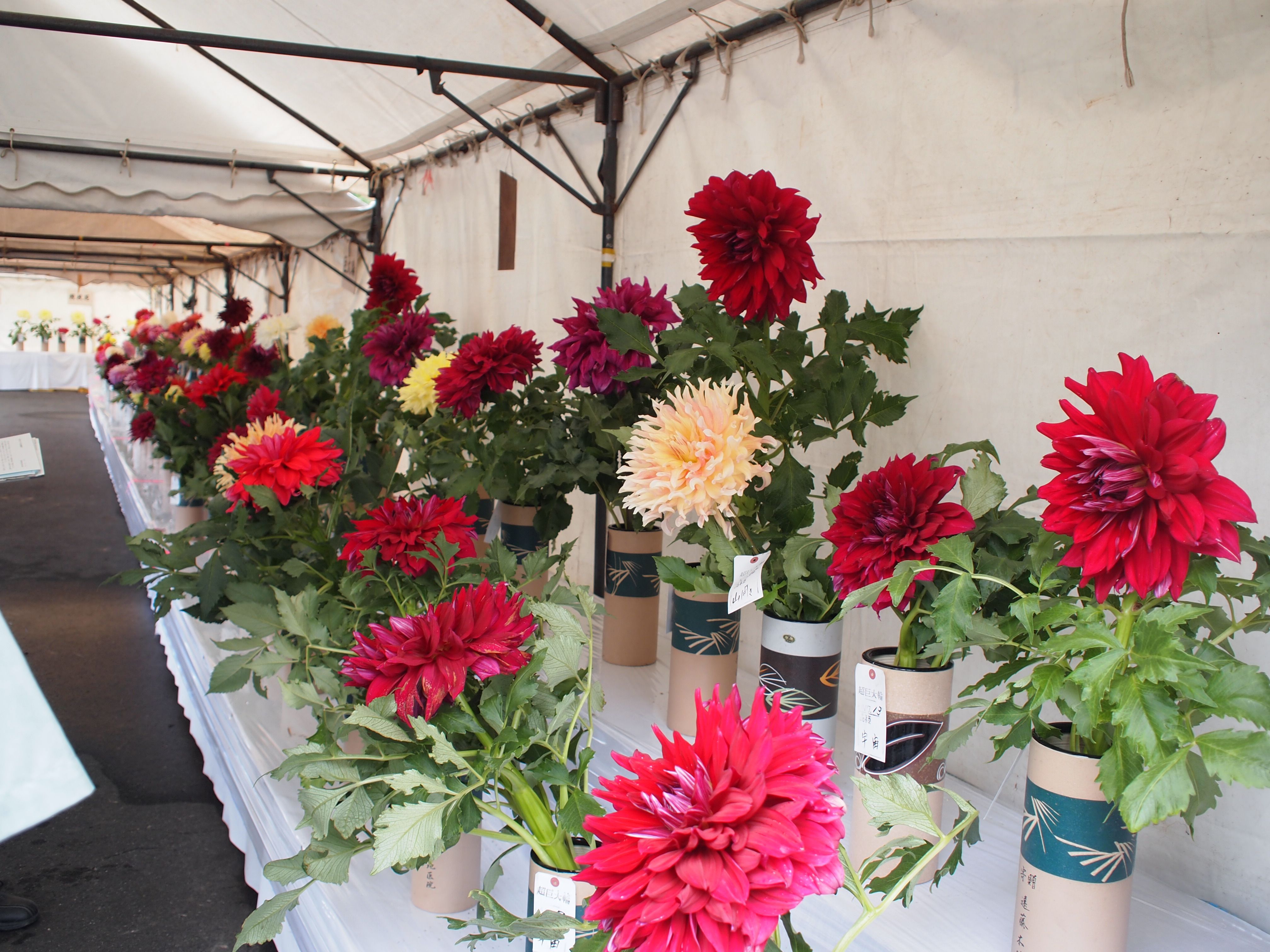 ダリヤ栽培愛好家の育てたダリヤの切花や鉢植えを展示する、全国でも珍しいダリアのみを集めた品評会。